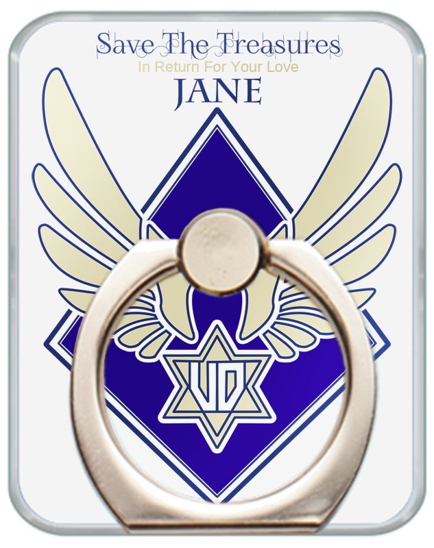 鮮やかなロイヤルブルー が印象的な "JANE" 徽章デザインのスマホリングです。やはり "JANE" には青が良く似合いますね。