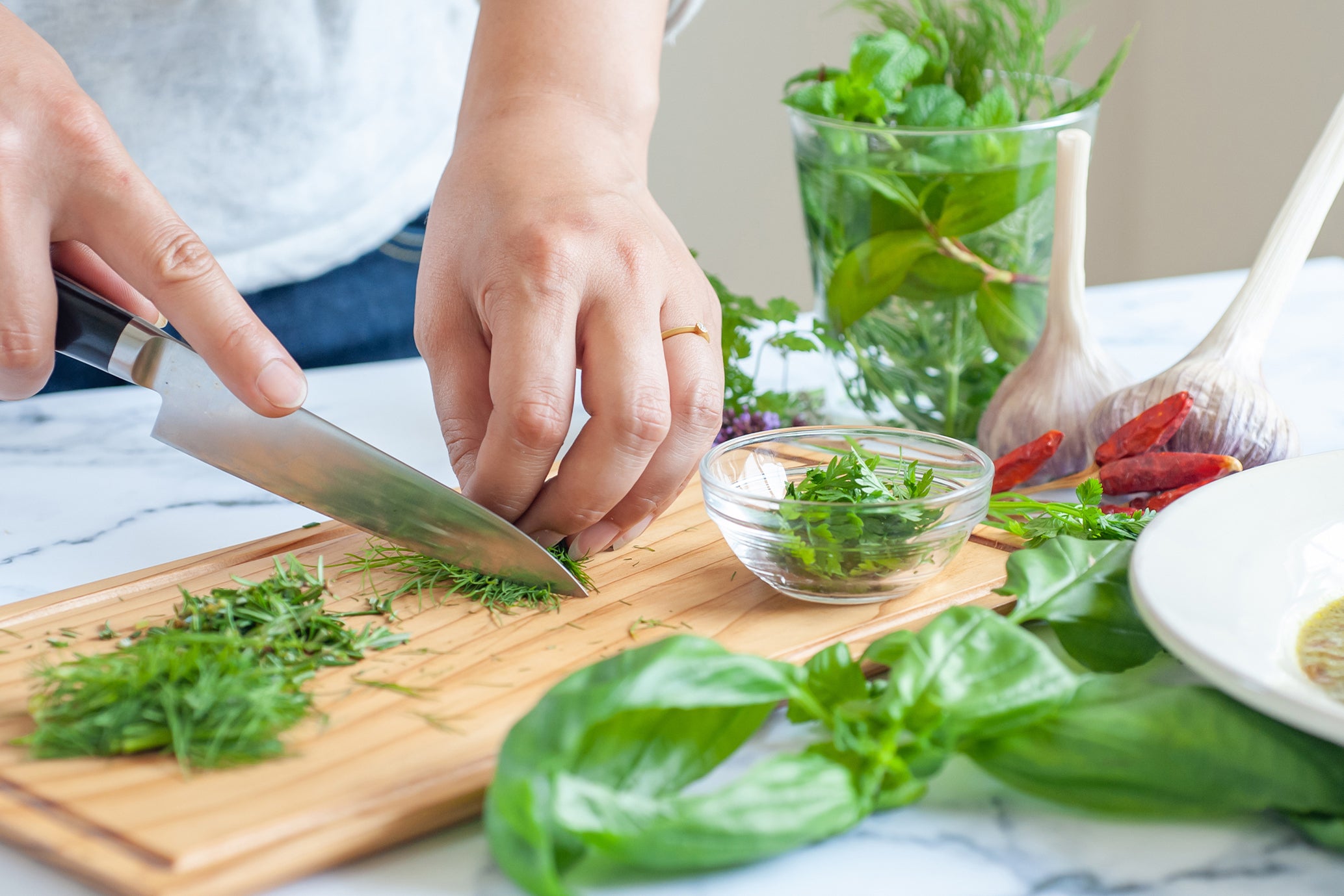 素材の風味をよりいっそう引き立てる役目をしているハーブの奥深さに感動し、ハーブの種類や料理方法の勉強をするようになりました。