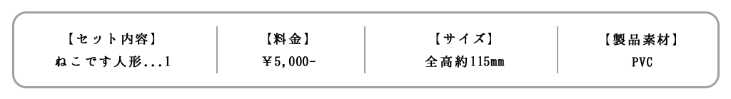 説明: SCP-040-JP-PVCは、SCP-040-JPのミームに曝露した対象が報告する"ねこ"の人形です。材質はポリ塩化ビニル(polyvinyl chloride)で、全高約115mmほどの大きさです。
