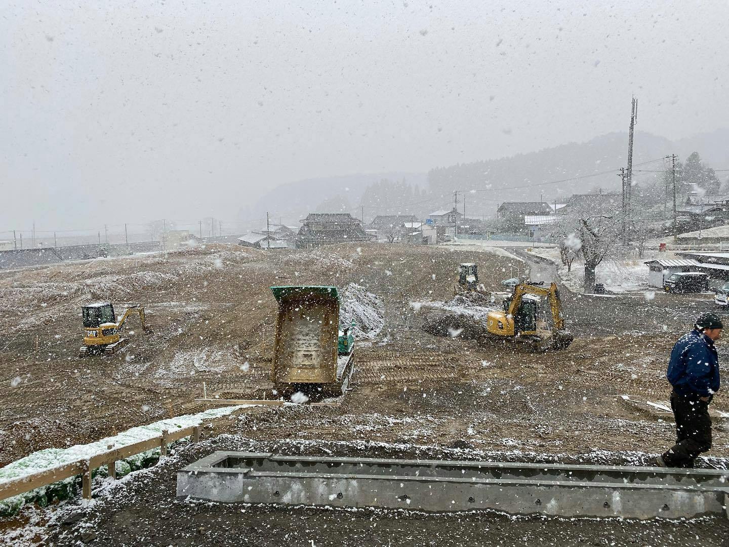 工事会社中村建設様の全面協力で、大船渡では珍しい雪の中で工事が急ピッチに進められています。現在はコースのセクションごとに土を移動してもらっており、来週からセクション作りに入っていきます。