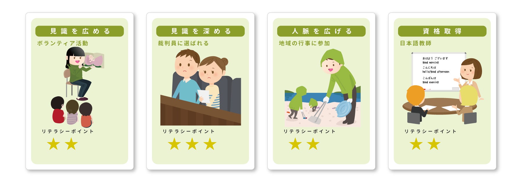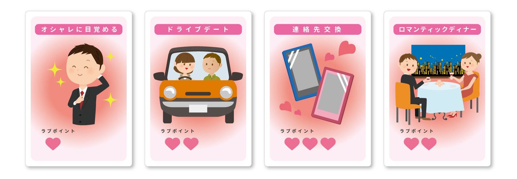 ③ラブカード、リテラシーカードのマスに止まったら、指定されたカードを引き、ラブポイント、リテラシーポイントを集める