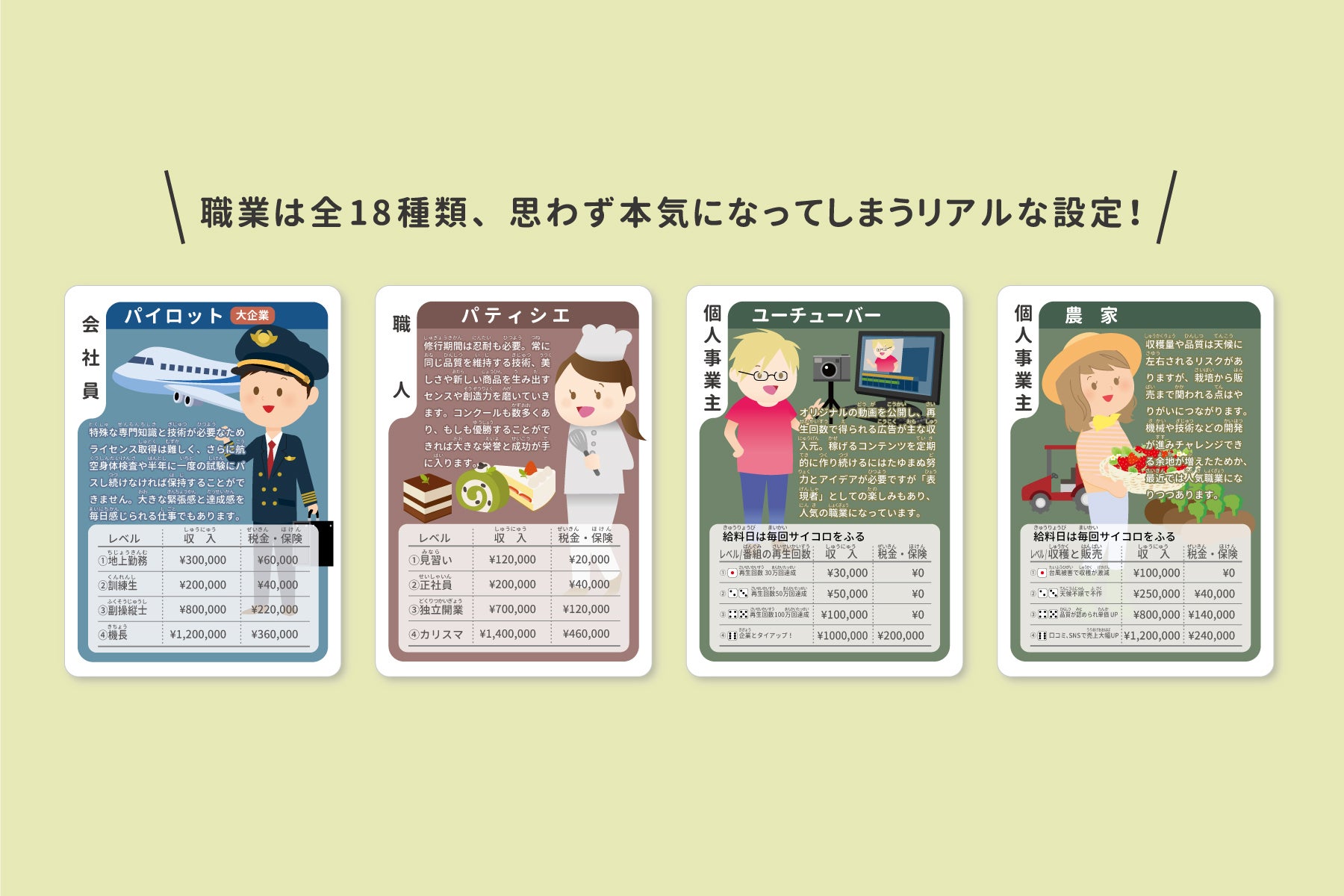 ボード上で架空の人生を歩み、多くの制度を体感することで、遊びながら「社会で生きる力」を身につけるすごろくを作りたいと思っています。