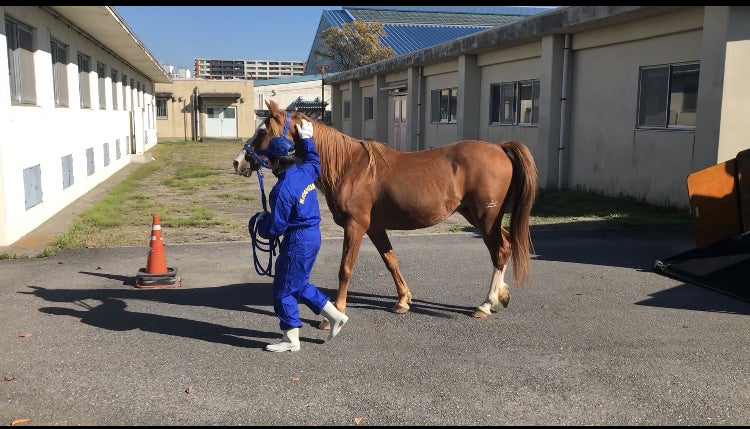 写真は、馬運車から降りてきたときのもの。