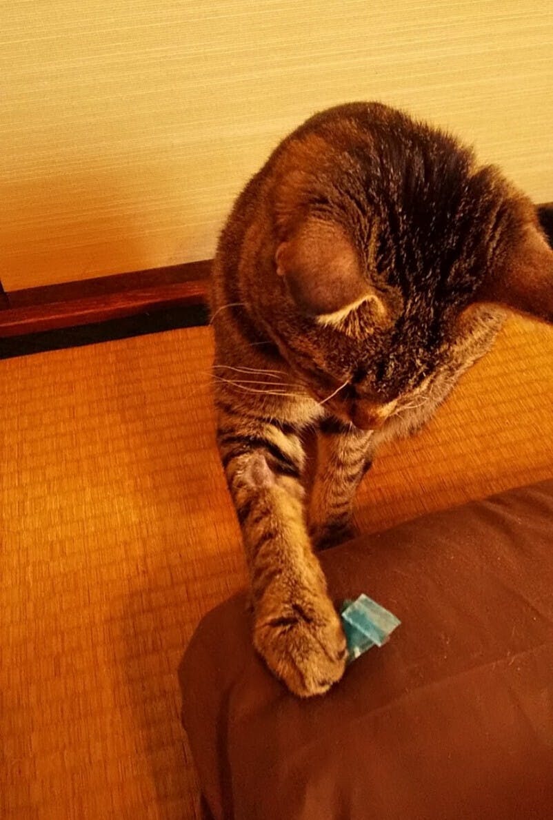 写真は今撮りました。ストーブに着いていたビニールテープを剥がして丸めたのでもう20分は興奮して遊んでます。好みが微妙...