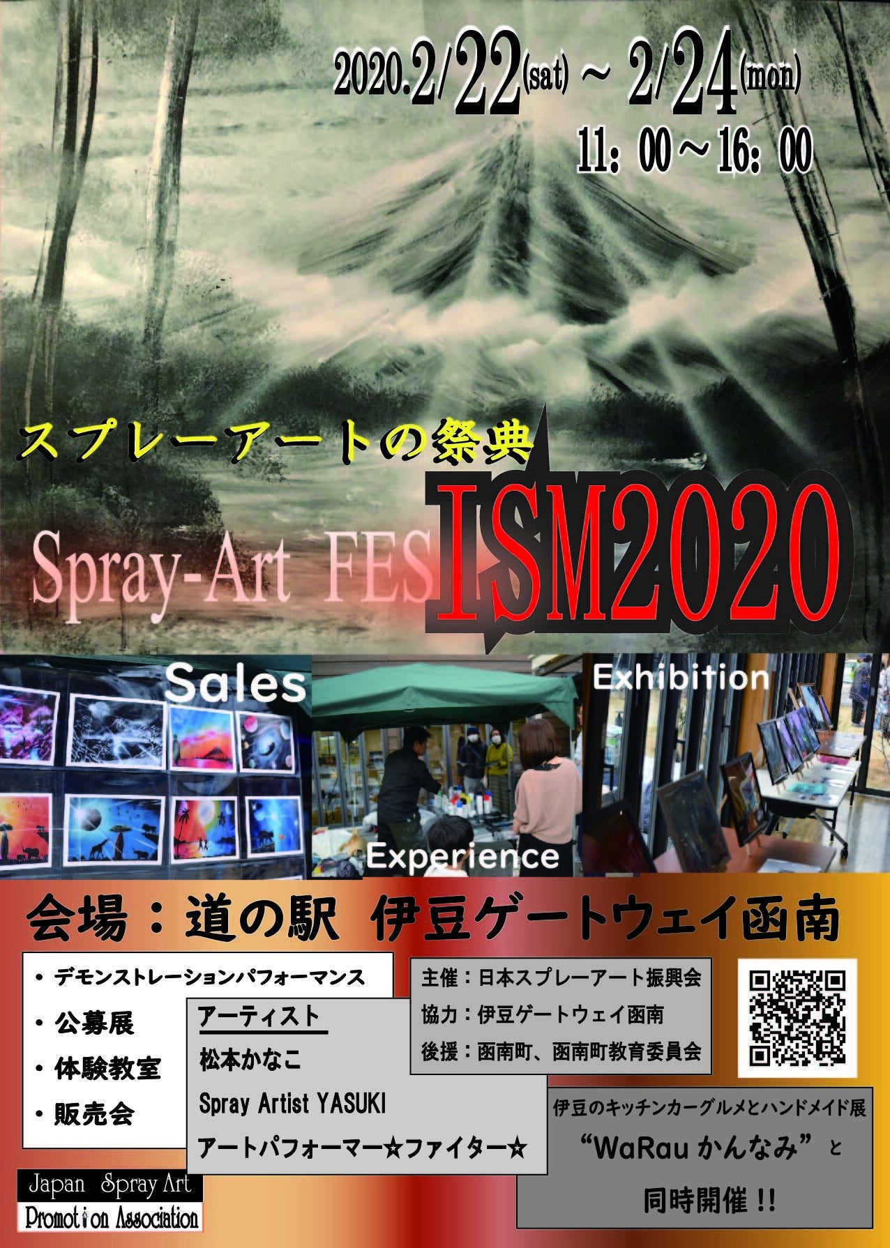2018年2月に初開催し、今回で3回目となるスプレーアートフェスISM2020を開催し、更に発展させます。フェスと言ってもまだまだ小さな規模ではありますが、今回は会場が今までの倍以上の広さになり、10名近くのスプレーアーティストが参加予定です。キッチンカーも数台入り、より”フェス感”が出るかと思います。