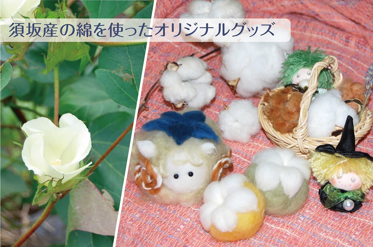 メンバーが栽培している綿と、アロマを使ったオリジナルグッズをご用意します。