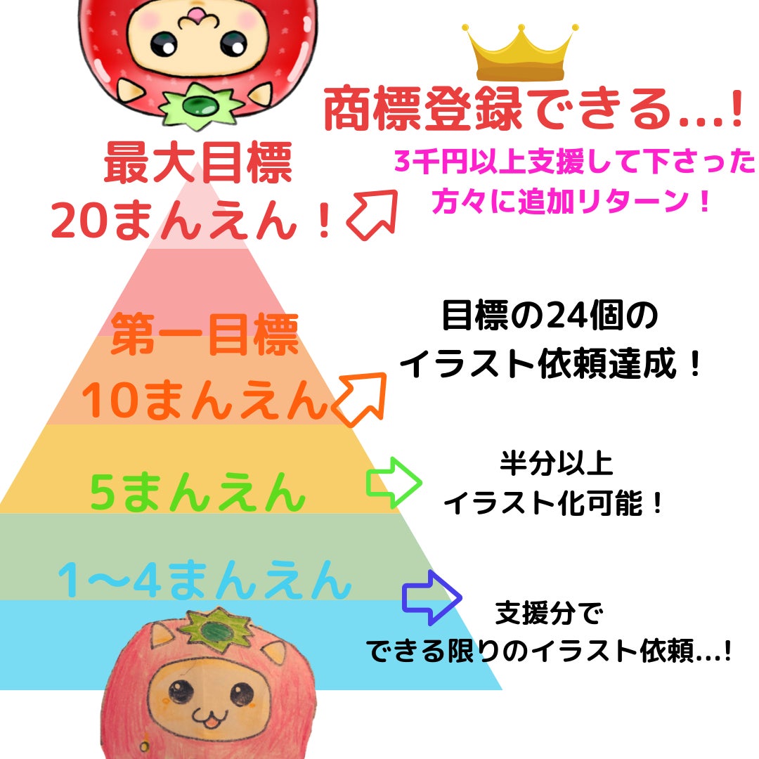 2019/10/19 22:45こんにちは皆様っ!!声優の いなせ あおい と(*´∇`*)いちご妖精ゴンザレス、通称いちゴンですっ(。◕ ∀ ◕。)10/10(木)に【いなちゃんちLINEスタンプ化企画】のクラウドファンディングを開始して、折り返しを迎えましたよ!!ご支援してくださった方々のお陰様で実は...第1目標である、アニメーターの長森佳容さんへのイラストご依頼料金が集まりましたー!!※↑長森さんからよろこびのコメントを頂きましたよっ!し か し 、、、まだ、この企画の最大目標が残っているのです...そう、【いなちゃんち】←この商標登録です。実際、クリエイターズとしてLINEスタンプを作るだけならば商標を登録する必要はあまり無いようなのですが、「スタンプを作ってそれでお終い...??それはあまりにもったいない!!」せっかく私とファンのみんなで作ってきた『いなちゃんち』の世界をLINEスタンプをゴールにお終いにはしたくないっっどうせなら、LINEスタンプを『スタート』にしたいだからこそ、【商標登録】をして、『いなちゃんち』の名前を使って商品を作っていく権利を買うことが、今後の為に必要となるのです!色んな人達の力を分けてもらって、これが達成できたら、もっといちゴン達は大きく歩きだす事ができます!!その為の力を、どうか 頂けませんでしょうか!!そして、もう一つのわたしの胸の内もお話しさせてくださいませ。クラウドファンディングをスタートして数日後、台風19号の影響で多くの被害が出てしまいました。被災して日々の生活に苦労なさっている方が沢山いる状況になりましたね、「この状況でスタンプ作りの為にクラウドファンディングをするのは良くないかもしれない。。」いっぱいいっぱい考えましたが、「でも、既にわたしの夢の為にもう支援して下さってる方がいるのだ...!私がやらせてくれと言って始めた事はやり切らなきゃいけないなあ...!」そんな風に思い、クラウドファンディングを続ける決意を固めました。今月やろうと思っていた事をきちんとやり切ってみます!支援を検討してくださっている皆様どうか、それぞれ身近な人を支える事を優先なさって下さいね!!無理なく、『お気持ち』だけでも とっても嬉しいのです(*´-`) もっと見る