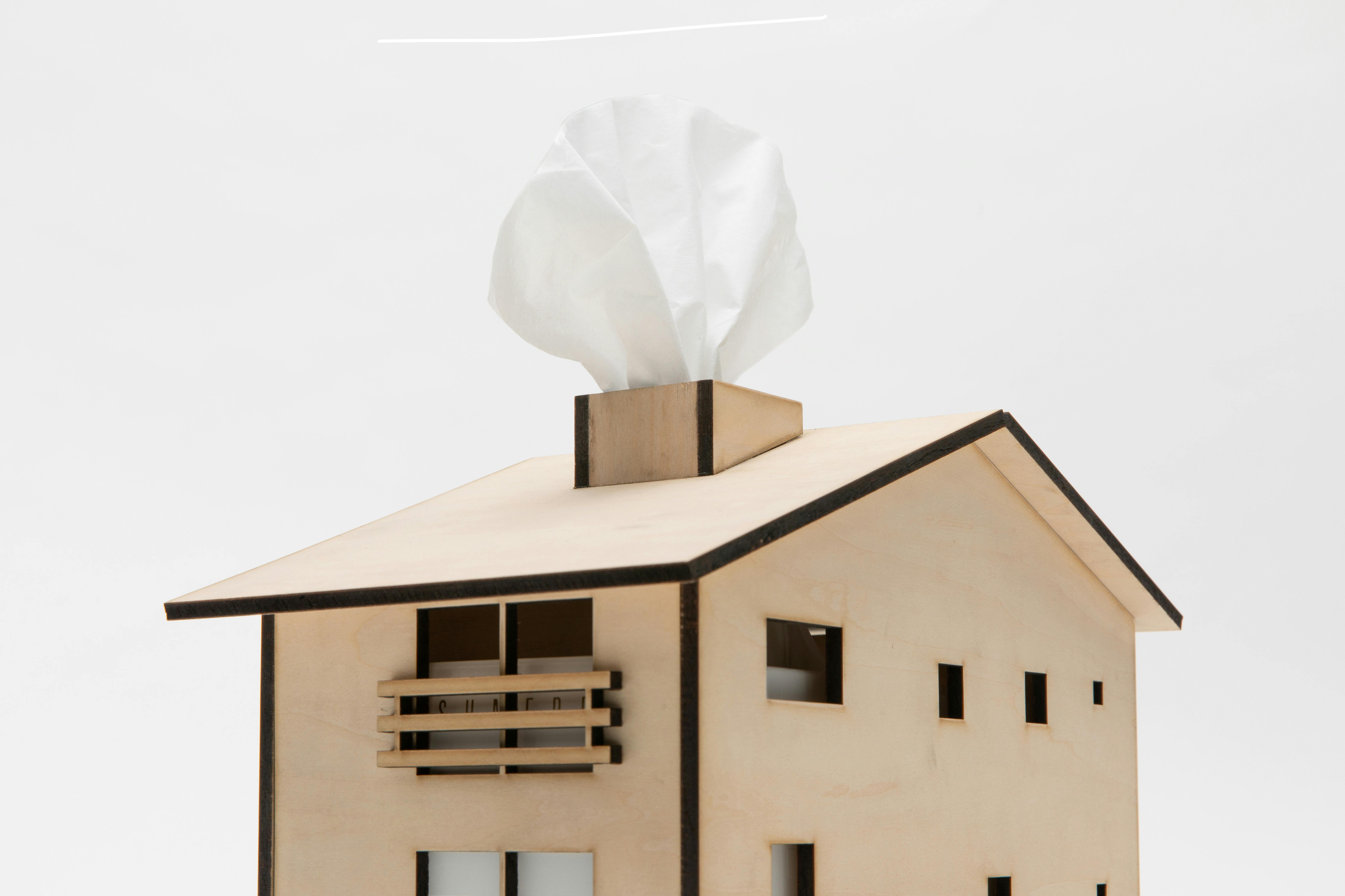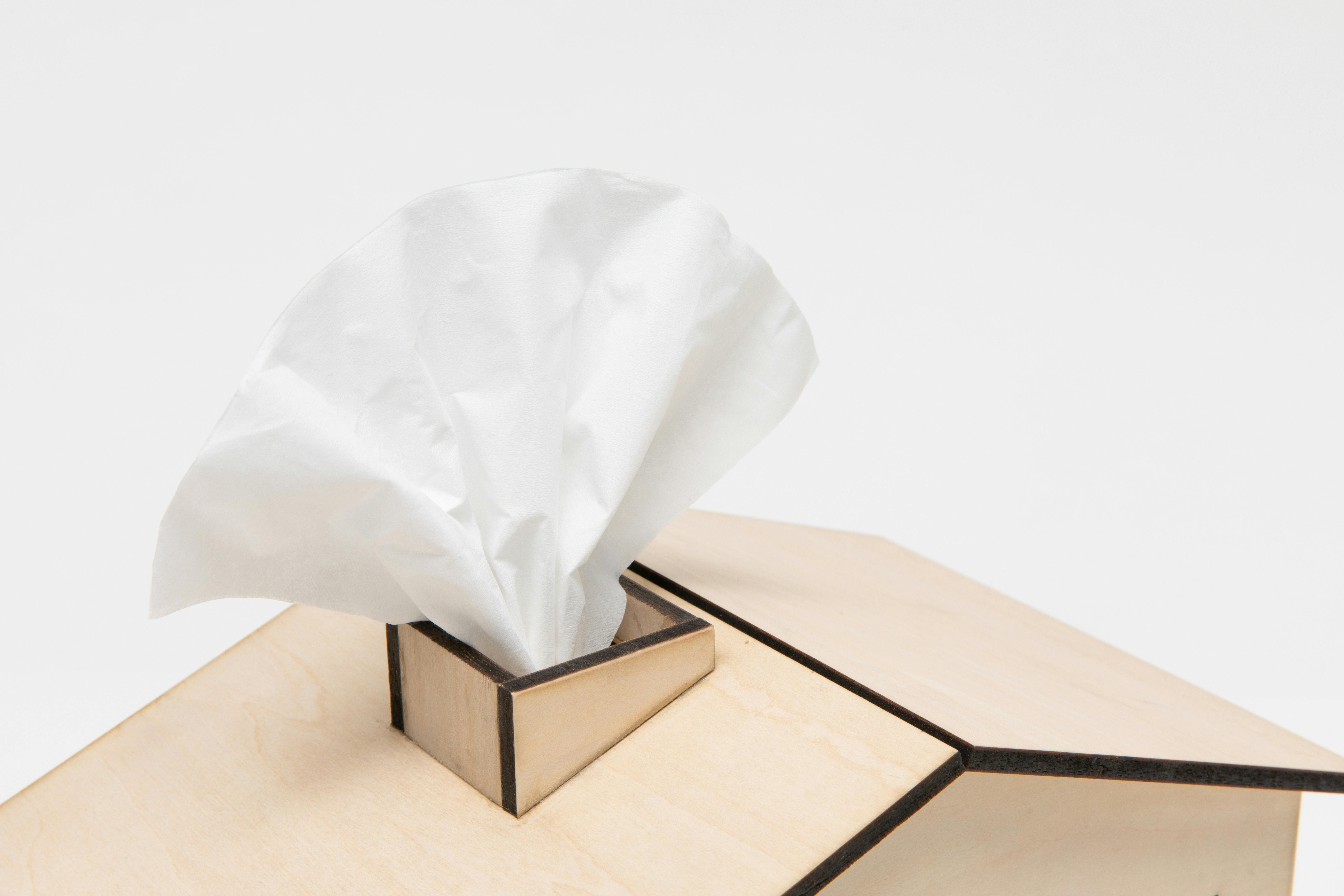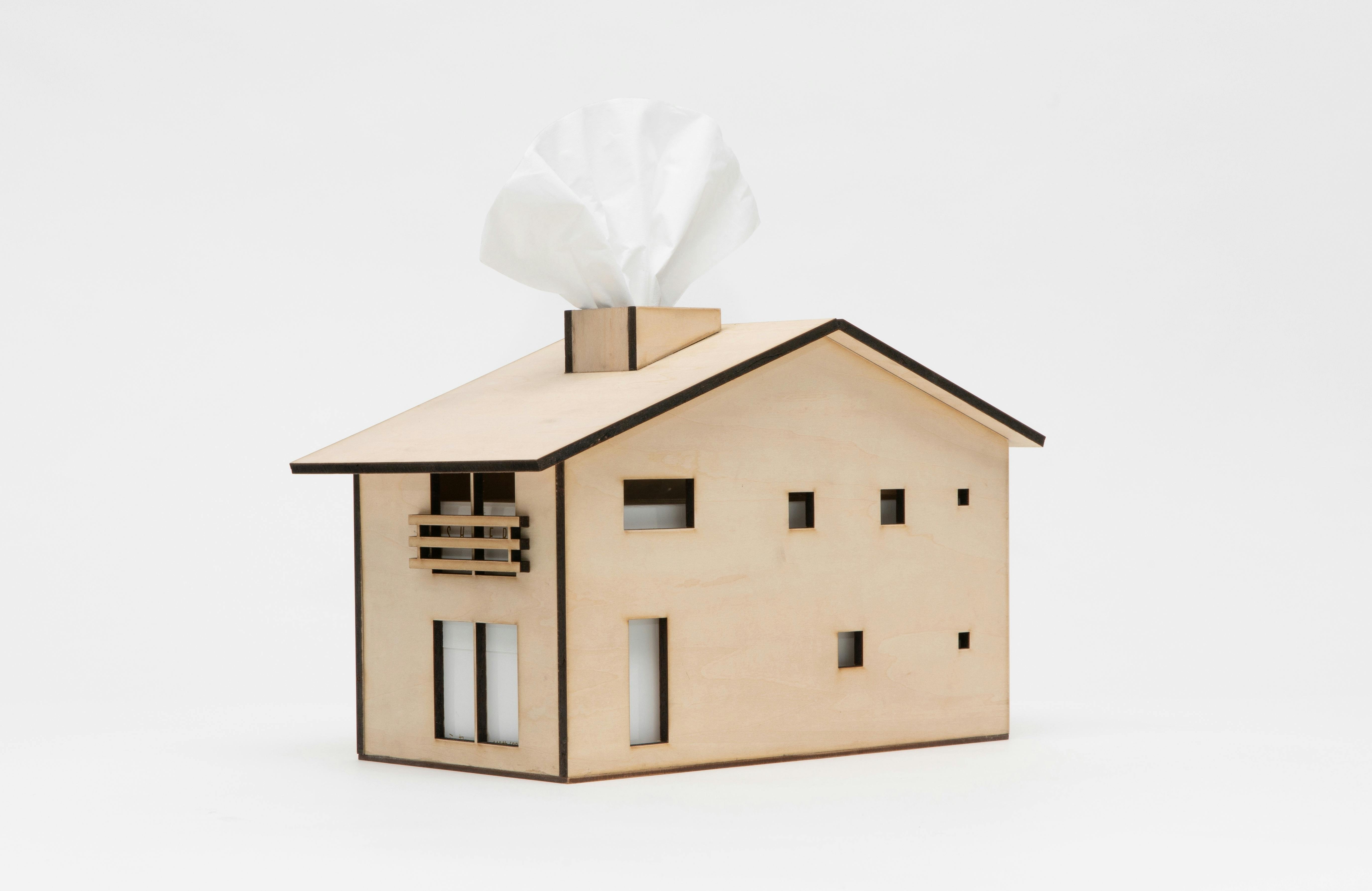 誰もが一度は見た事のある、家形のデザインにする事で、部屋のインテリアとして、自然と暮らしに溶け込むと考えました。屋根部分を取り外すことにより、ティッシュ箱の入れ替えが可能です。煙突部分からティッシュを取り出し、ご使用頂けます。
