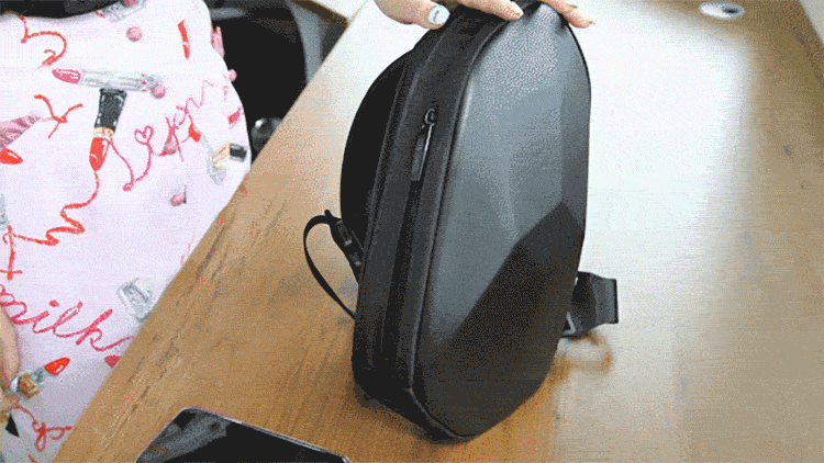 最初は、「今まで見たことのない新しいデザイン」を考えて、おしゃれで便利なボディバッグの製作を考えましたが、中身が空っぽの普通の布で作ったバッグはどうしても潰れてしまう・・・そこで、「盾」のイメージを取り入れ、研究開発を開始しました。