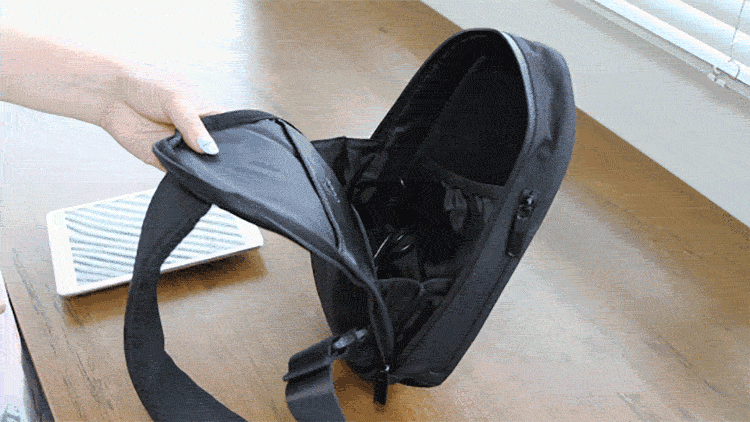 前面・後面、両方に収納スペース・チャックポケットを設け、薄くコンパクトながら、荷物をきれいに収める事ができます。