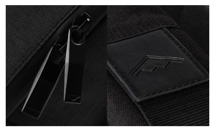 ダブルファスナーで左右どちらからも開けやすいデザイン。また、ロゴマークをあらゆるところに刻印し、絶妙なおしゃれさを演出しました。