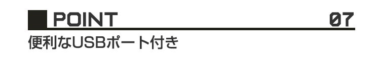さらにUSBポート付きで咄嗟の電池きれでもスマホを接続できます。