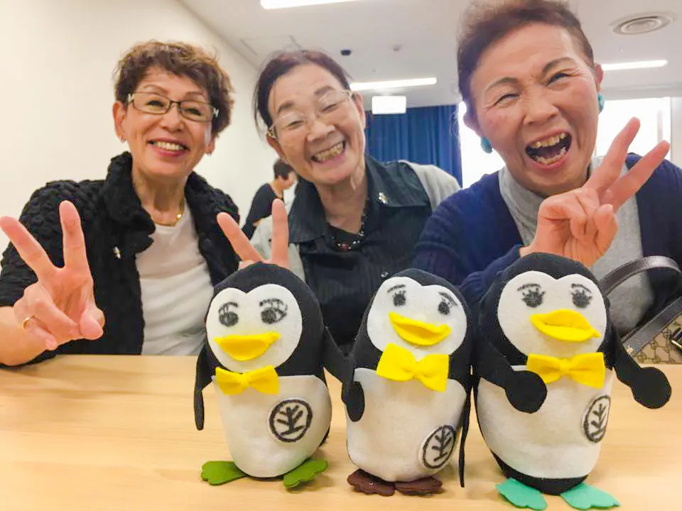 今回は、更生保護女性会員が心を込めて作ったこの更生ペンギン「ホゴちゃん」などの手作りマスコットを、