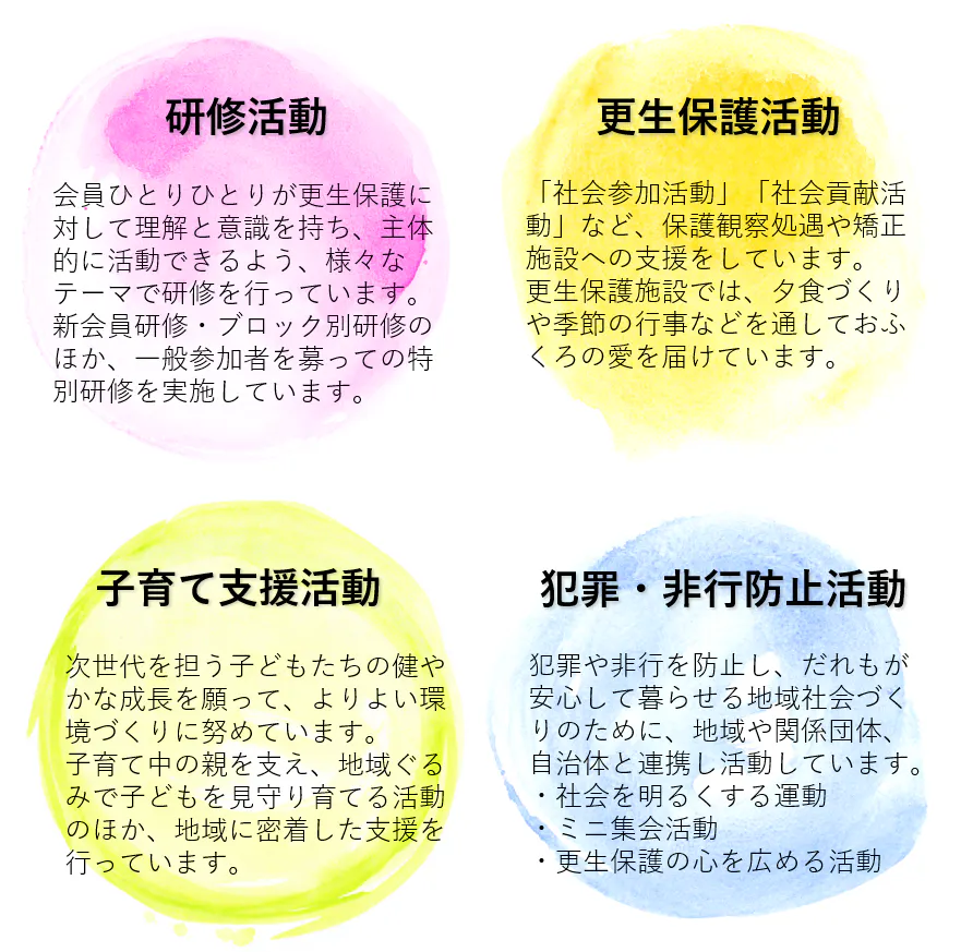 過ちに陥った人たちの立ち直りを支援する法務省管轄の女性ボランティア団体です。
