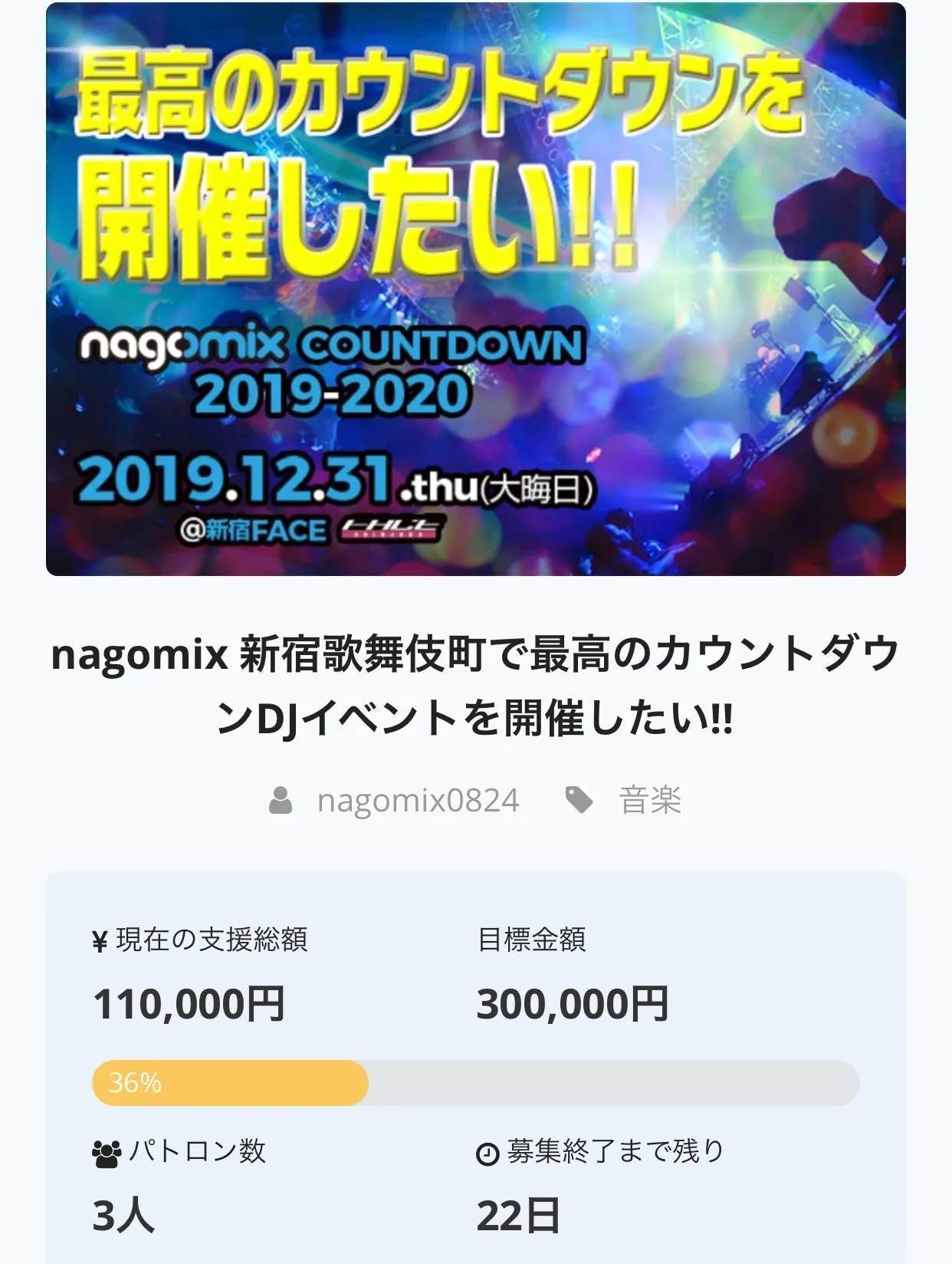 早速のご支援有難うございます! 2020へのカウントダウン盛り上げていきたいと思っておりますので何卒皆様のお力添えを頂けましたら幸いで御座います。
