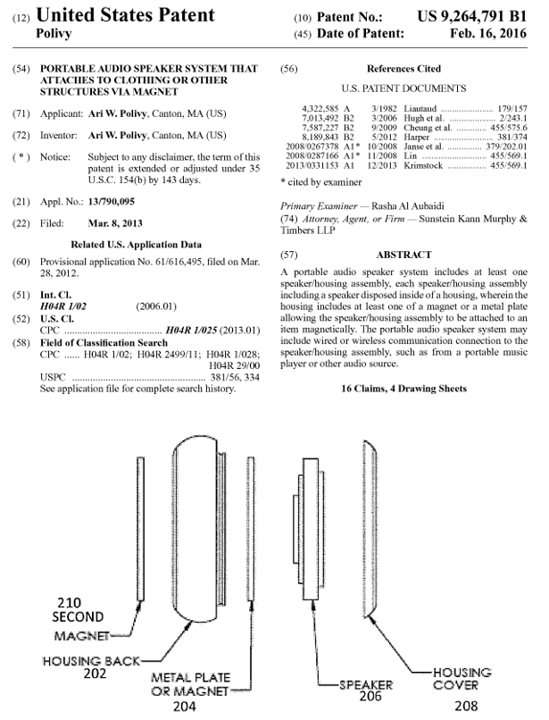 この⾐服にマグネットで装着するスピーカー仕様はアメリカで特許取得済みです。
