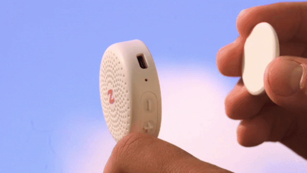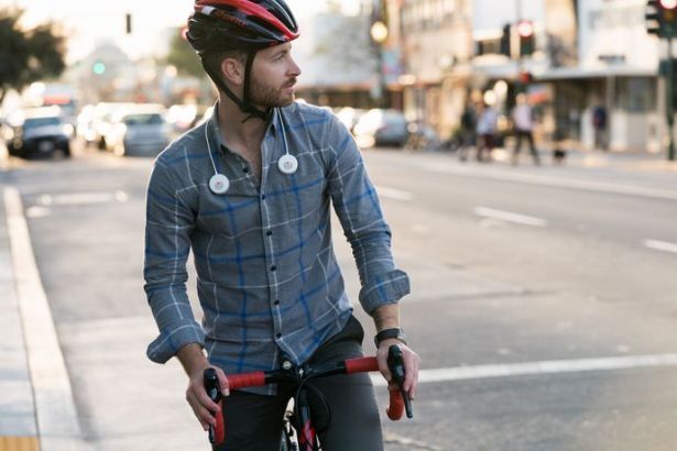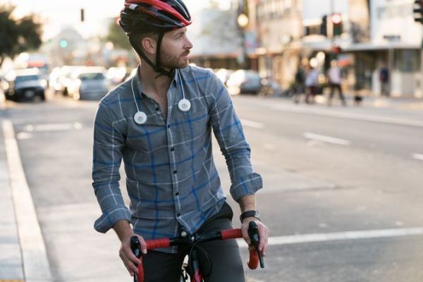 マグネットで衣服を挟むだけの、簡単な装着方法。