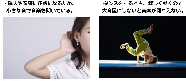 ヘッドホンのように音は遮蔽しませんので、適度な音量でご使用下さい。