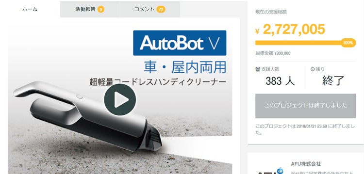 前回、約300万円を集めた「AutoBot V」の新作が満を持して登場!