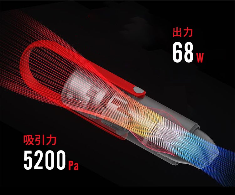 コードレス掃除機なのに、出力は驚異の68W、吸着力は5200Paもの圧倒的なパワーと吸引力を備えています!