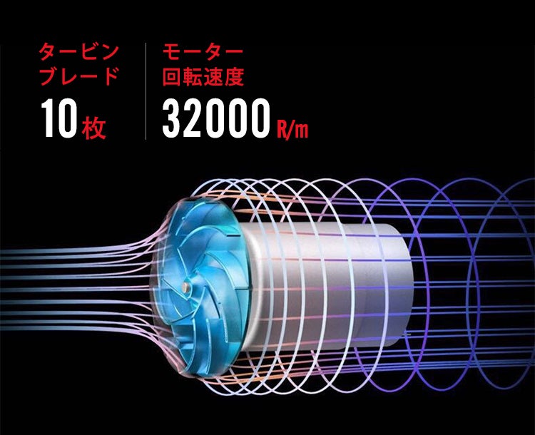さらに、タービンブレードを10枚搭載、毎分最大32,000回転のモーターによって、安定した吸引力を提供し、バッテリーが無くなる寸前までしっかりとゴミを取り除きます。