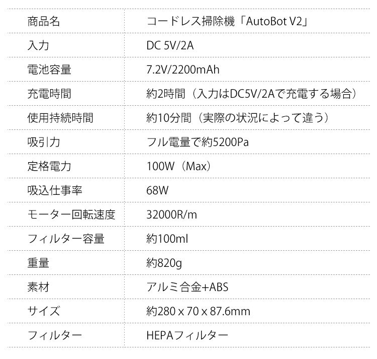 AutoBot V2なら普段使いの掃除機としては十分です。