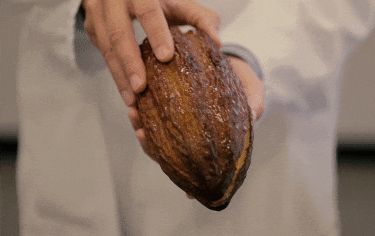 カカオマス :カカオペーストとも呼ばれる。カカオバターを絞る種子の部以外の残りの部分、すなわち、果肉部分を熱を通して炒めた後、固めたかたまり。
