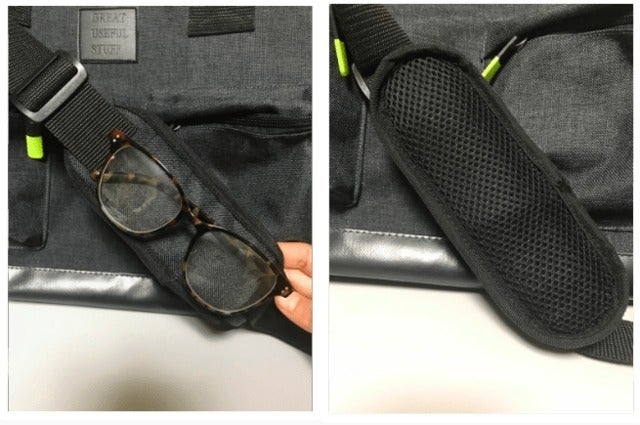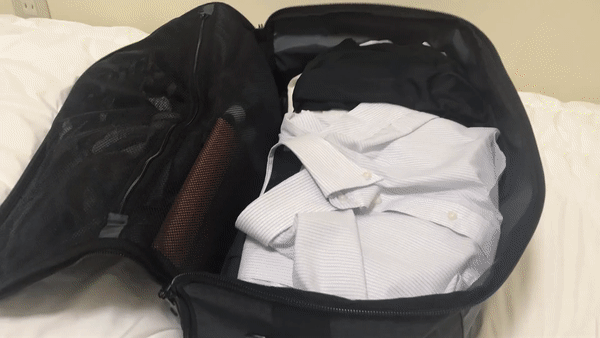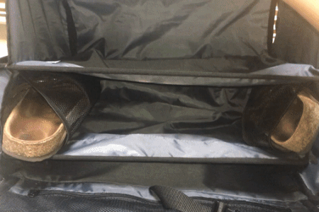 初回のテストでは服は真ん中に集まってしまい均等に収まらずスペースが均等に利用できませんでした。タブレットや小型のラップトップのスペースは重要であり、中綿の入ったショルダーストラップも重要でした。