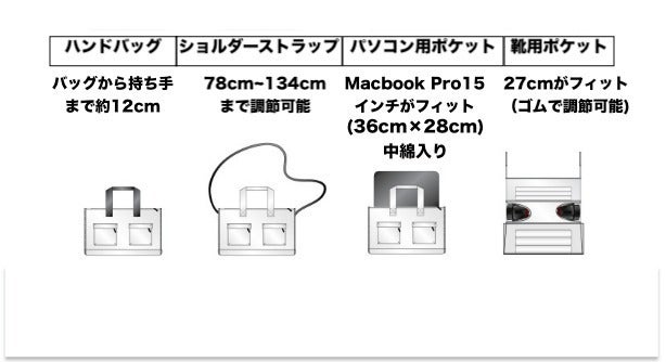 ※ バッグが落下する可能性があるので不安定さを感じた場合は一時的な使用にしてください。