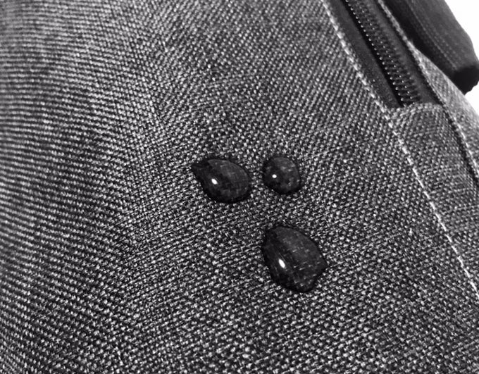 A: 底面は「防水仕様」ですが、ボディーは「撥水加工」ですので完全防水ではありません。