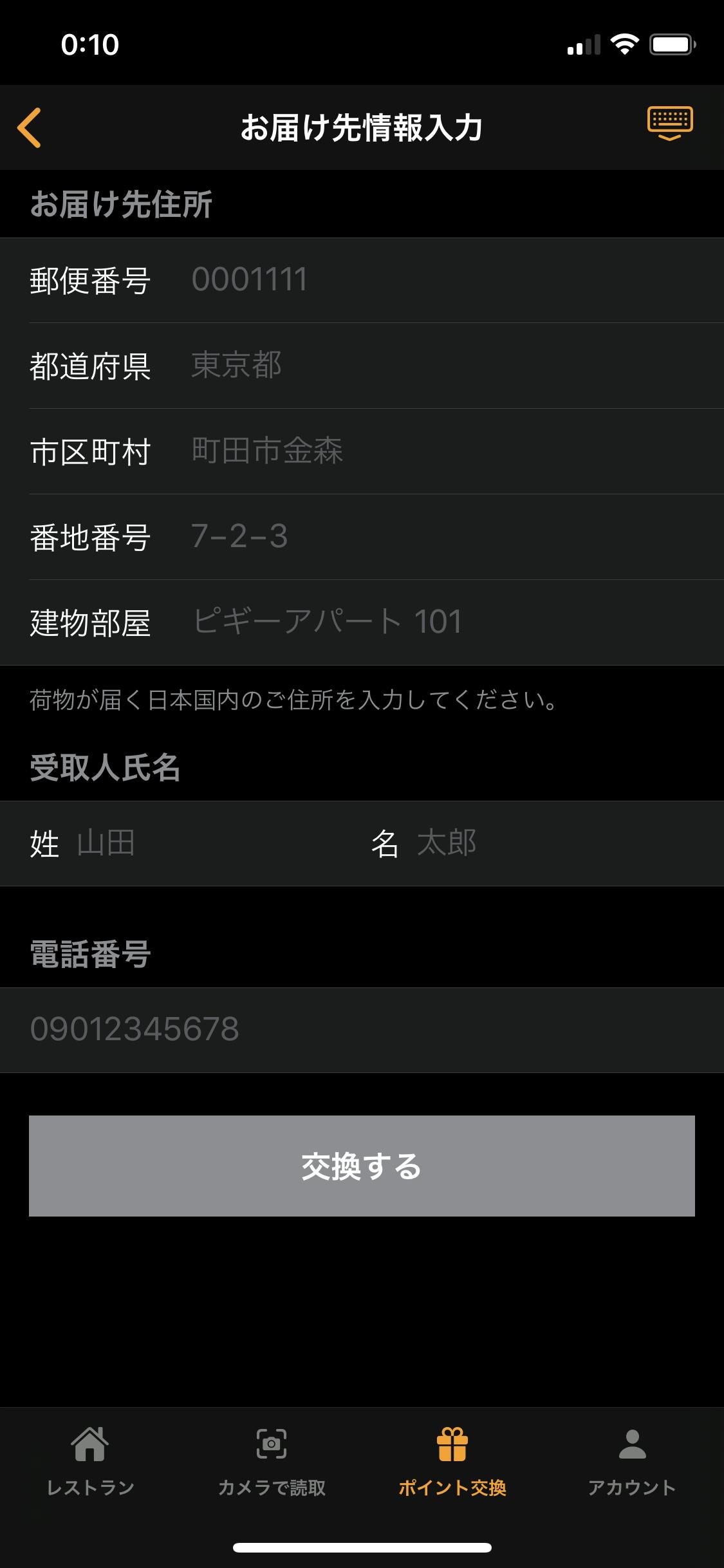 お届け先情報実装済