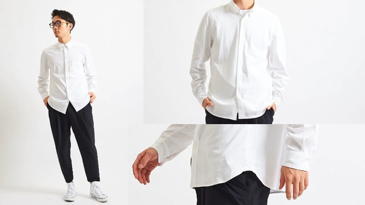 想像を超える出来です!!軽くて涼しいけど適度な厚みがあって布帛のような風合い、長Tとシャツ足して2で割った感じって言ったら伝わるでしょうか、とにかく、新感覚のシャツです。