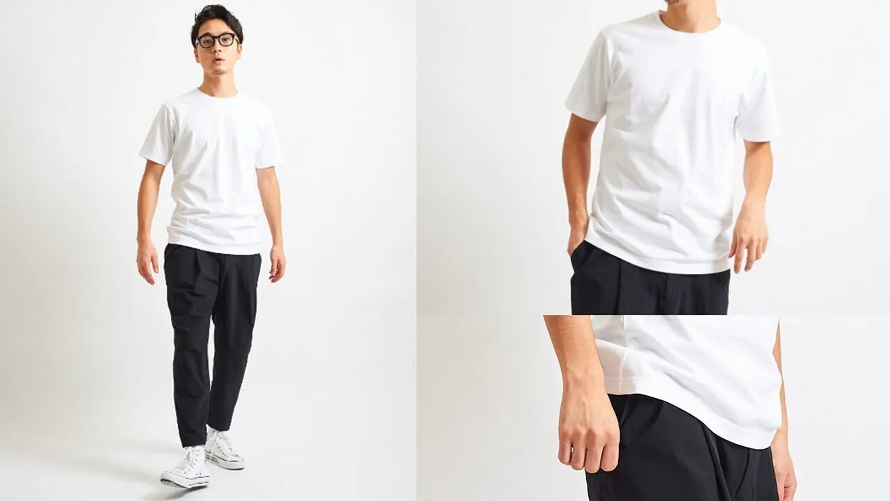 スリムフィットなシルエットで、一枚で絵になるシンプルでカッコいいTシャツです。綿でもない、麻でもない、和紙が持つシャリ感と綿のしなやかさが混ざった絶妙な触感と軽さを兼ね備えた綿和紙Tシャツは、蒸し暑い日本の夏に最適です。