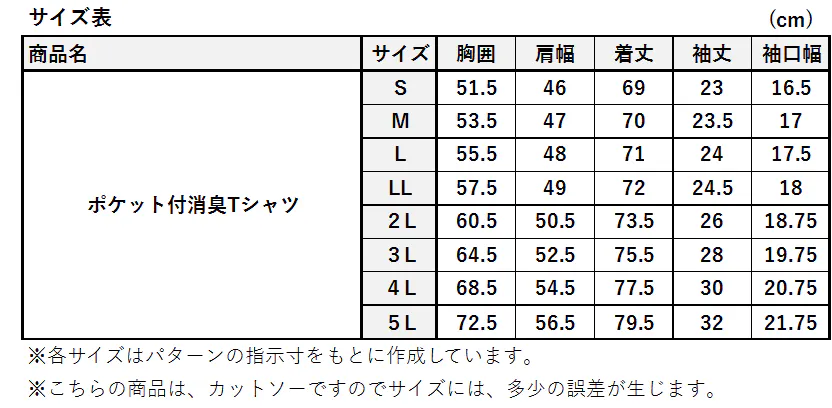①ポケット付消臭Tシャツ