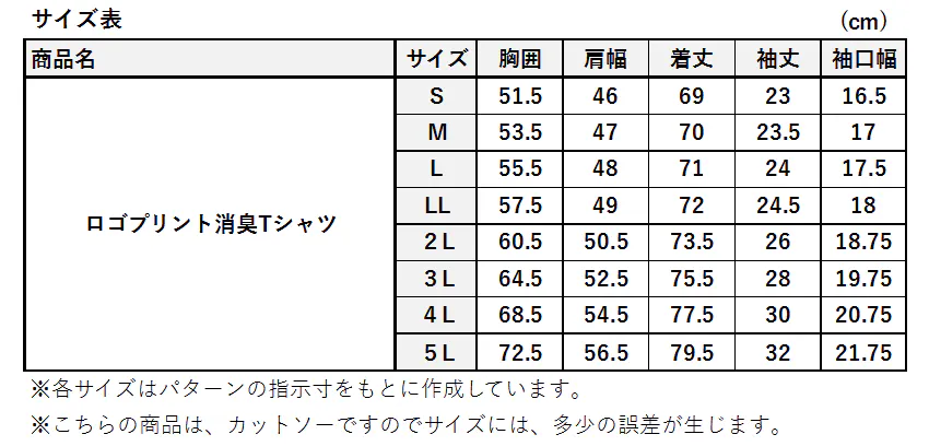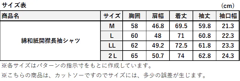 展開サイズ:S/M/L/LL/2L/3L/4L/5L(メンズサイズ)