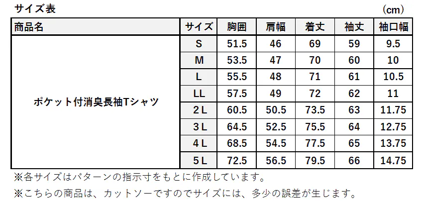 ②ポケット付消臭長袖Tシャツ
