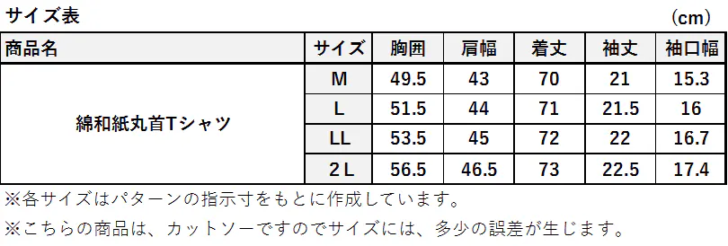①綿和紙丸首Tシャツ