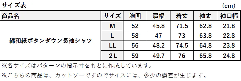 ⑦綿和紙ボタンダウン長袖シャツ