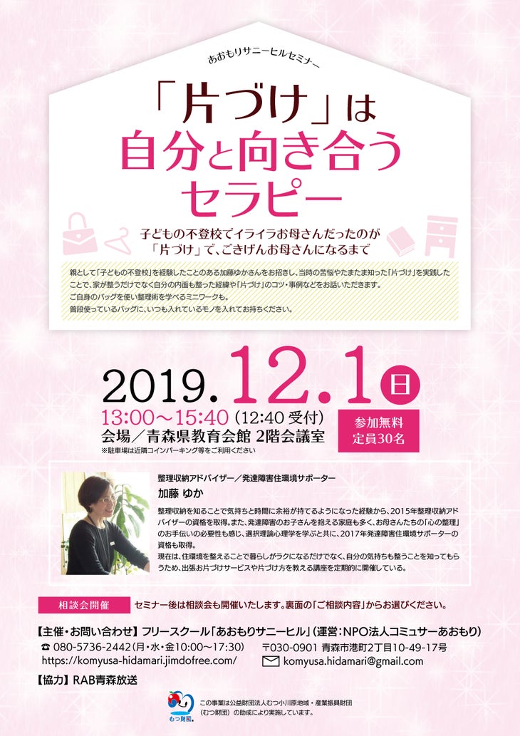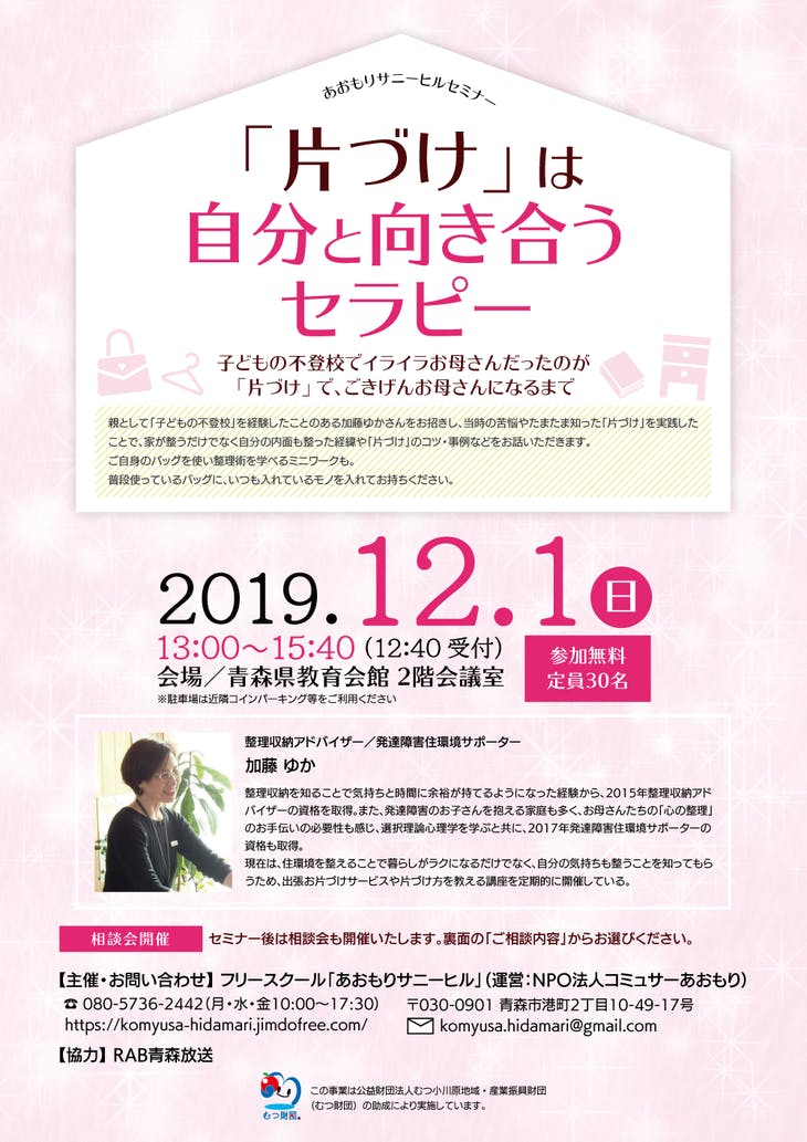フリースクール あおもりサニーヒルは、日頃の子どもの居場所や学習支援だけではなく当事者や親御さん、支援者の役に立つセミナーや交流会的な場も作っています。
