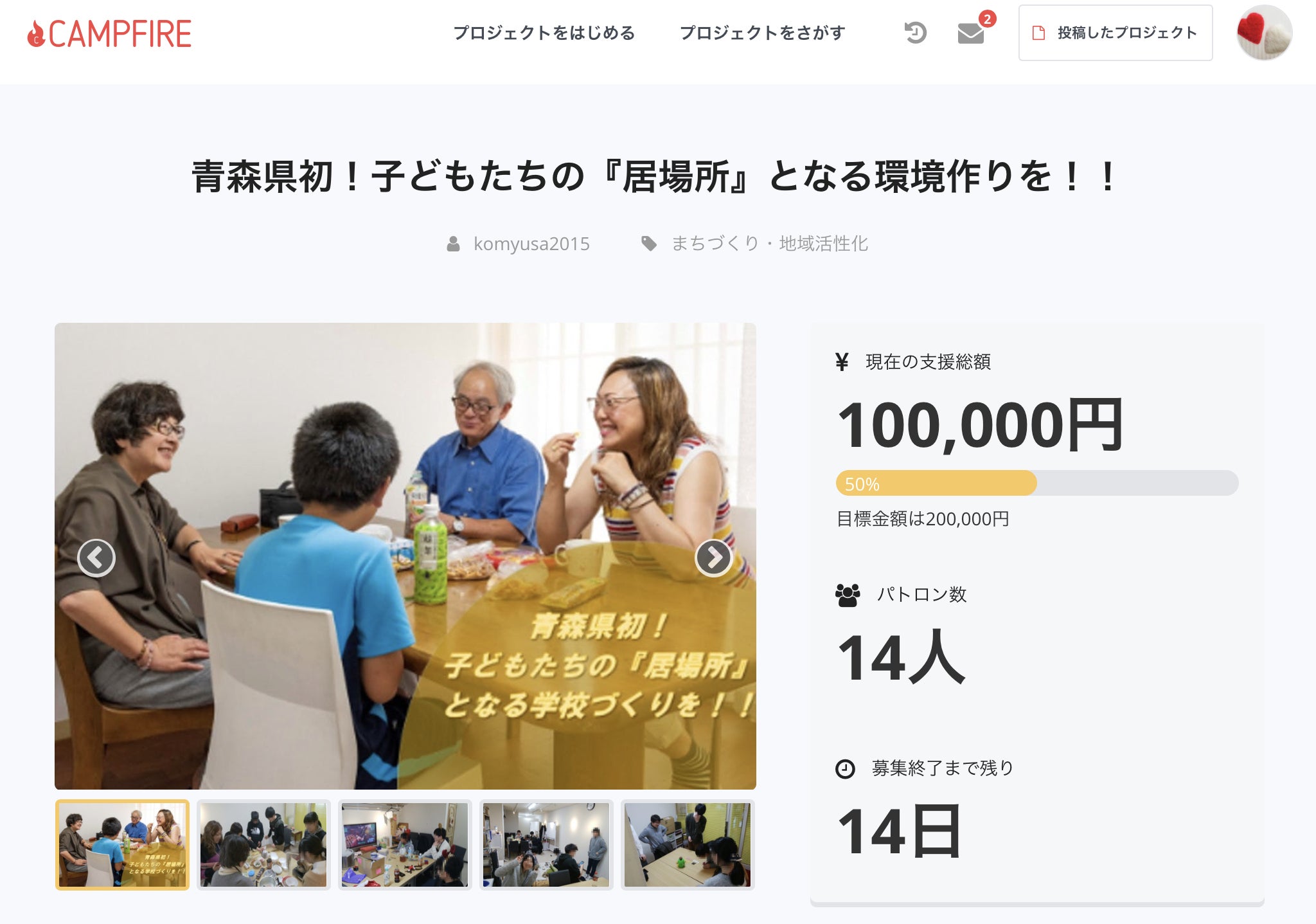 残り14日となりましたがおかげさまで達成まで50%となりました。