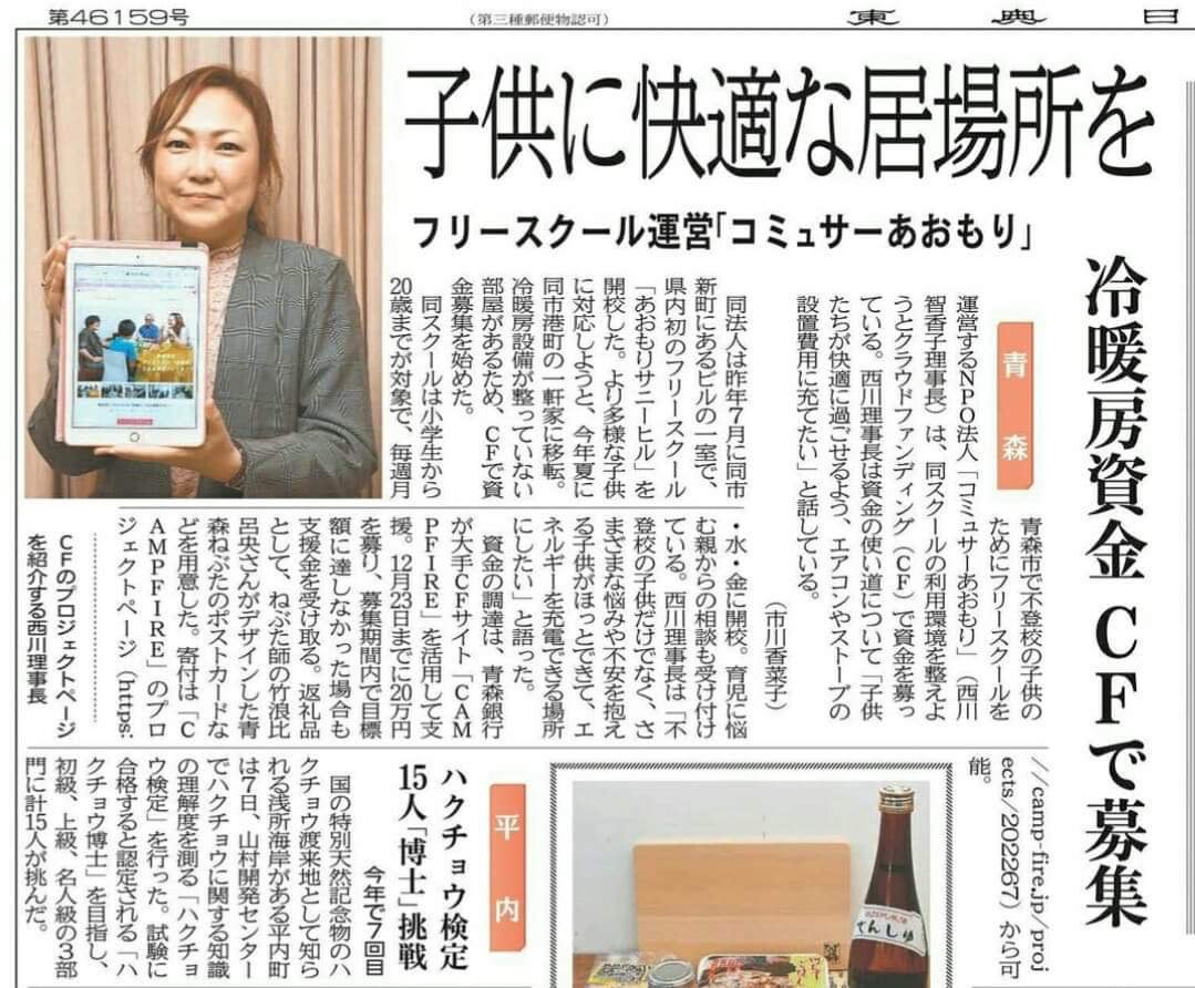 本日は地元紙である東奥日報さまの紙面に大きく取り上げていただきました。