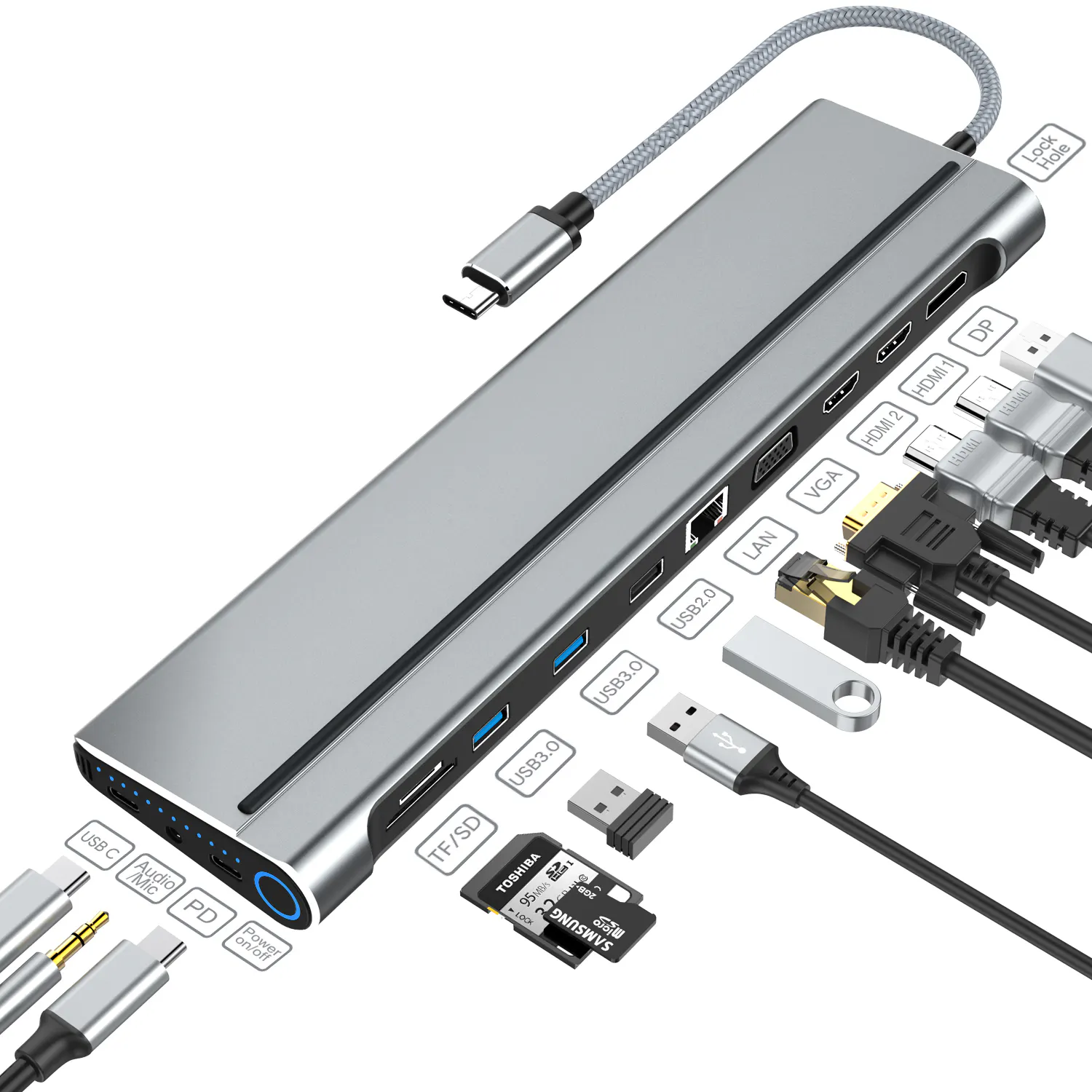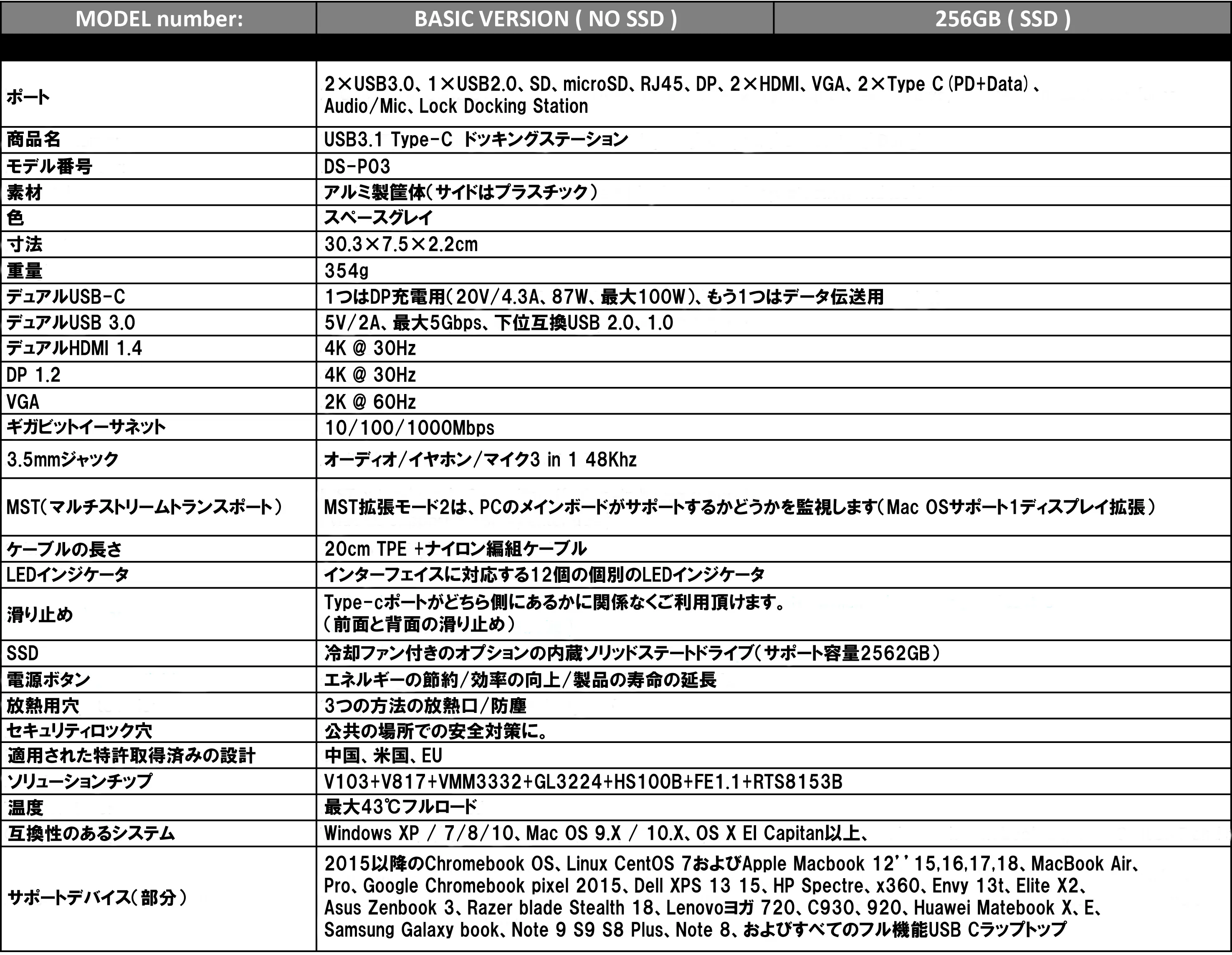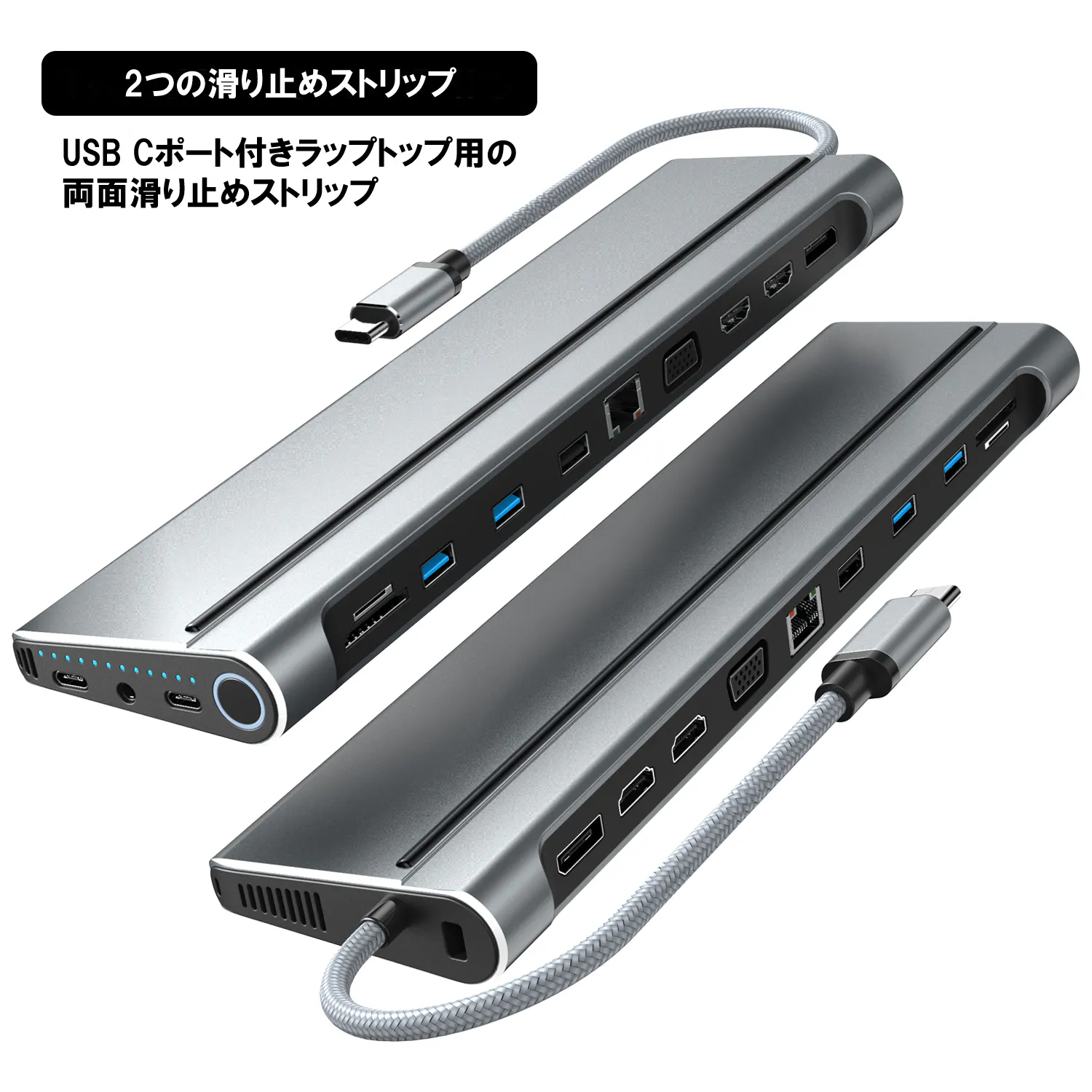 ポート:2×USB3.0、1×USB2.0、SD、microSD、RJ45、DP、2×HDMI、VGA、2×Type C(PD+Data)、Audio/Mic、Lock Docking Station
