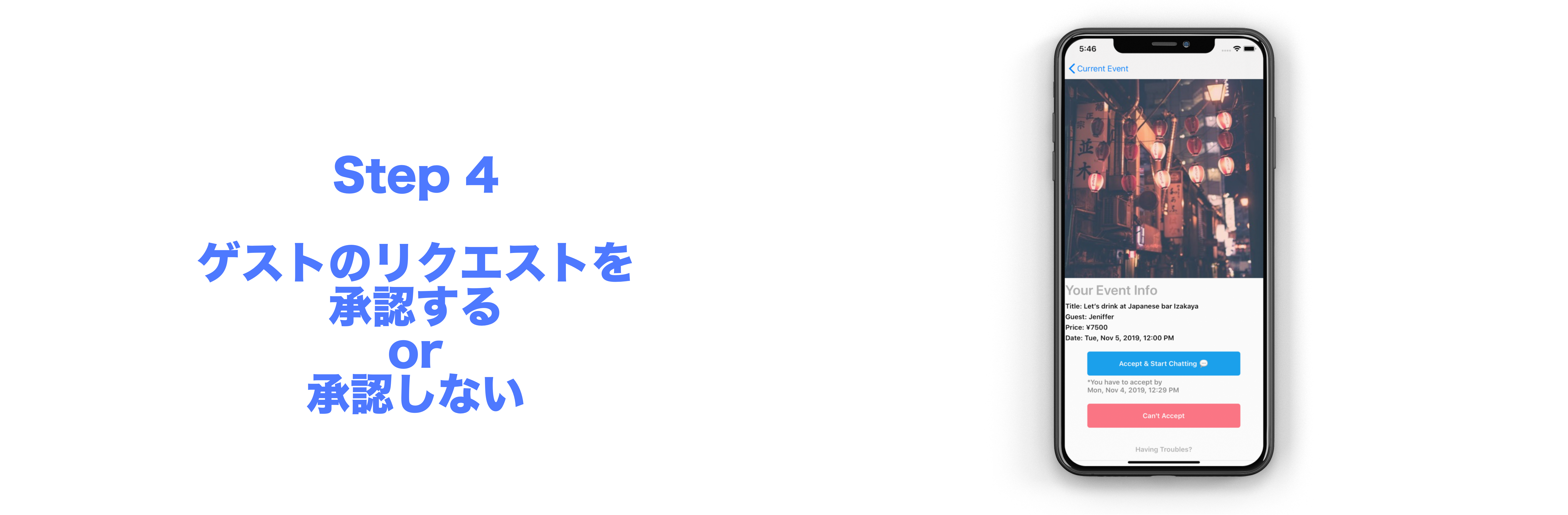 このアイディアを浮かんでから、まずは体験を提供するホストとゲストとのやりとりがスピーディー&安全なサービスを作らないといけないと思いました。