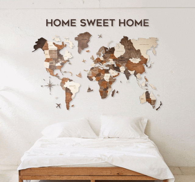 3D Wood World Mapは自由、旅、人生を愛する人のためのイマジネーションを刺激するアートでもあります。