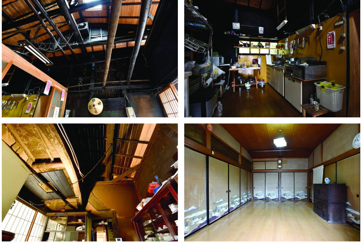 当プロジェクトでリノベーションされる古民家の内部。玄関を入ってすぐの土間や台所の壁・天井はススが覆っており400年の歴史を感じさせられます。