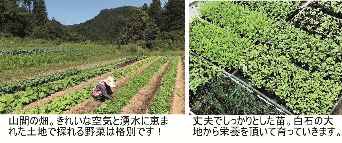 丈夫でしっかりした苗づくりと、できるだけ農薬を減らして子どもたちに安心して食べさせられる多品種の野菜作りをメインに、りんご、山野草を栽培しています。湧水が流れ、虫の声が響きあうこの場所で新鮮で彩り豊かな採りたての野菜を食べれることに日々感謝しています。