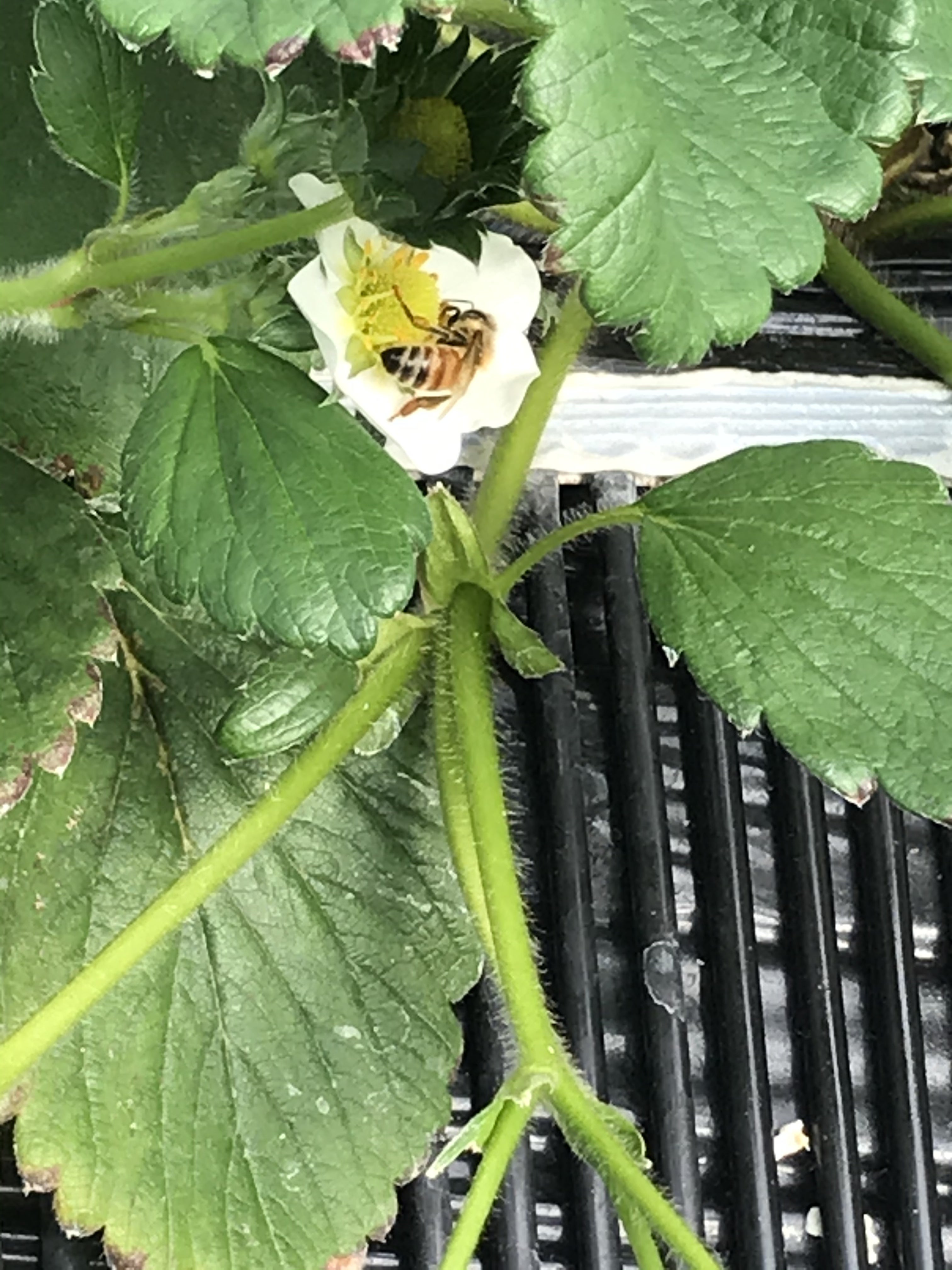 仕事中!苺の受粉。1月10日 金曜日 曇り白石発笑顔の里の竹下です。ご支援、シェア、いいね!をありがとうございます。今日は、竹下の両親が営む苺ハウスの働き者、蜜蜂君たちのお話しです。苺農家にとって、蜜蜂は必要不可欠な存在です。蜜蜂たちが元気に飛び回り花粉を集めに精を出してくれなければ苺は実りません。以前も書きましたが、苺は農薬の使用が大変多い果物です。慣行栽培での農薬使用回数は、宮城県41回、福岡県63回となっています。あくまでガイドラインです。蜜蜂は農薬に敏感で、特に神経毒を含むネオニコ系の農薬の使用により群が消失するという現象が世界中で問題になっています。私の両親が作っている苺は、育苗期に10回、ハウス内に植え付けてからは春以降気温が上がり始め病害虫の兆しが現れるまで、農薬の使用はありません。蜜蜂たちは怖いくらいブンブンと飛び回っています。もう一つ蜜蜂が元気な理由。蜂蜜を搾取しないということです。苺は花に蜜はありません。ハウス内に入るまでにせっせと貯めた蜂蜜で冬を越すのです。冬の間砂糖水を飲ませていた時期もありましたが、蜂蜜を搾取せずに、砂糖水なしで養蜂した方が、蜜蜂が元気という結論に至ったようです。考えれば当然のことで、ミネラル豊富な蜂蜜と精製された残りカスである白いお砂糖の差は歴然のようです。増え過ぎて、外で出待ちの状態。元気な蜂蜜君たちに支えられて、今日も美味しい安全安心の苺がうまれます。蜜蜂をみても、農薬や食べ物が健康に与える影響がわかります。私たちはこの事を子育ての中で痛烈に学んでいます。食べ物や環境が、体や心をどう変えていくかを知っています。このクラウドファンディングで実現する古民家食堂で、私たちが持つ知識を総動員して、心も体も元気になる食を提供していきます。営業許可が取れるキッチンを作らせて下さい。この台所は、ただ美味しいものを生み出すだけにはとどまらず、世の中を変えていく初めの一歩になるはずです。支援をお願いします!