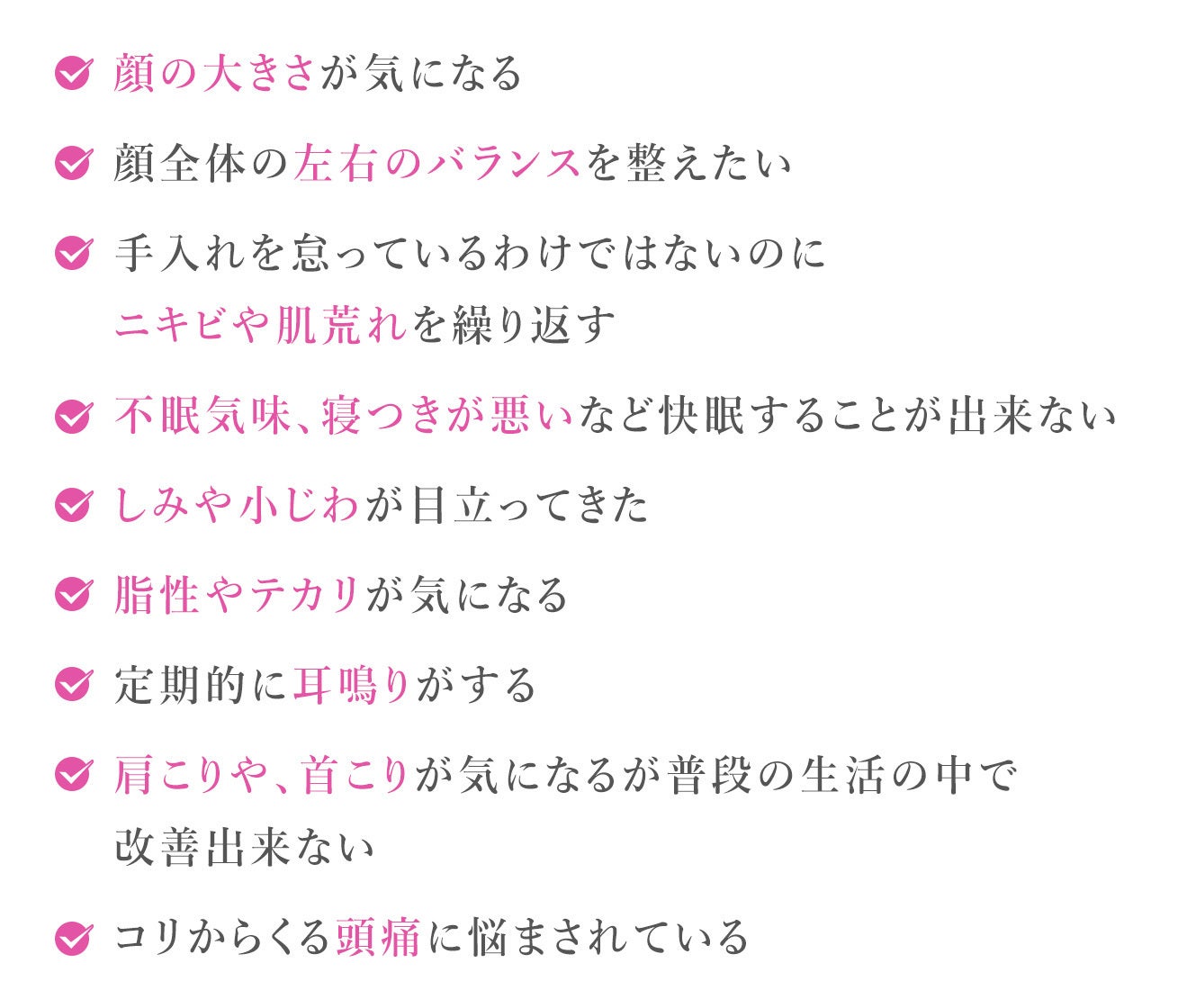 頭蓋骨小顔矯正では、この原因を解消させるため、小顔効果はもちろん、お肌への良い影響を与えることが期待できます。