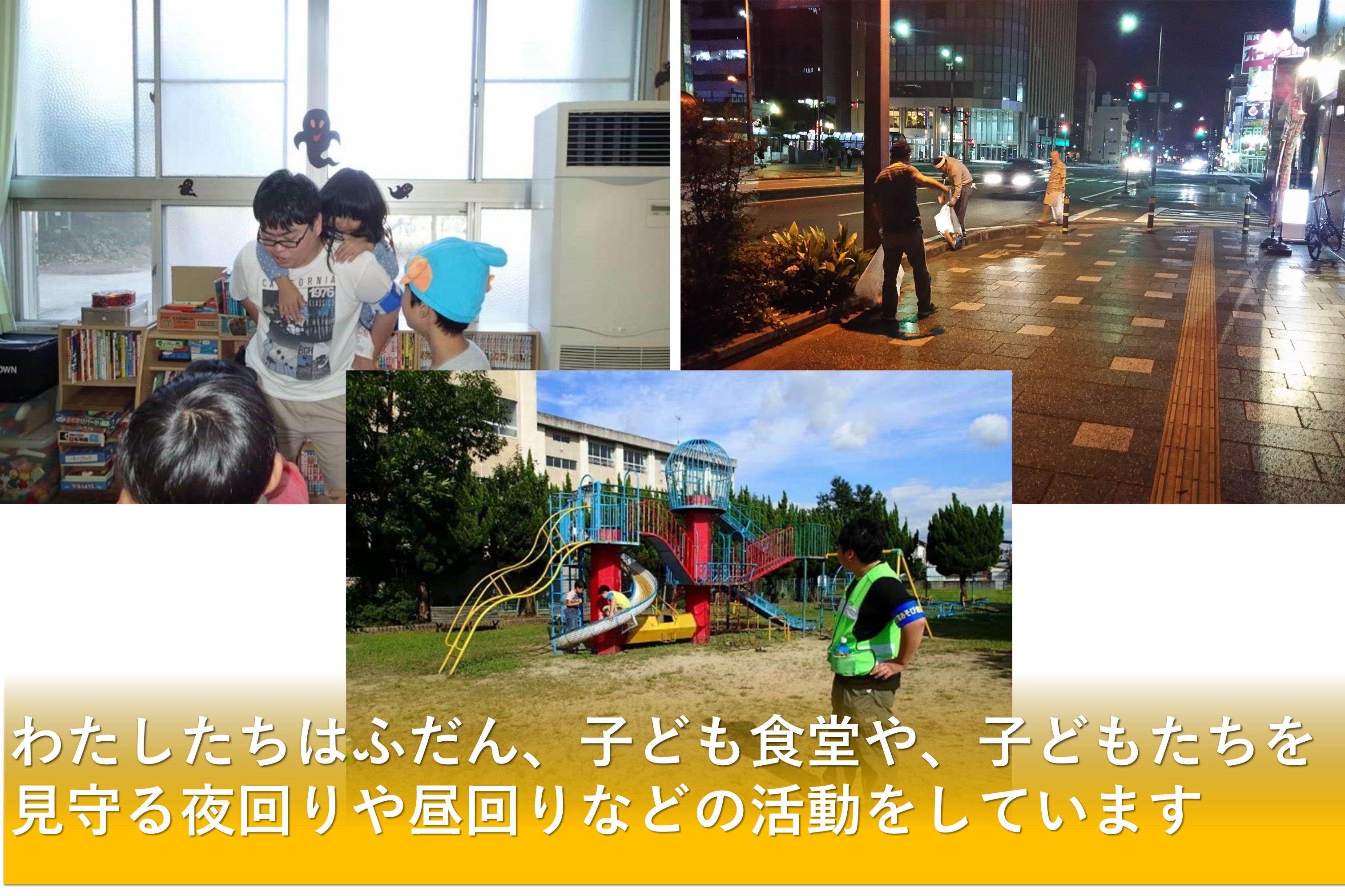 夜回り運動の様子ただ、昼夜問わず気になる子どもたちに声をかけるので、たまに不審者と勘違いされてしまうこともしばしばあります。