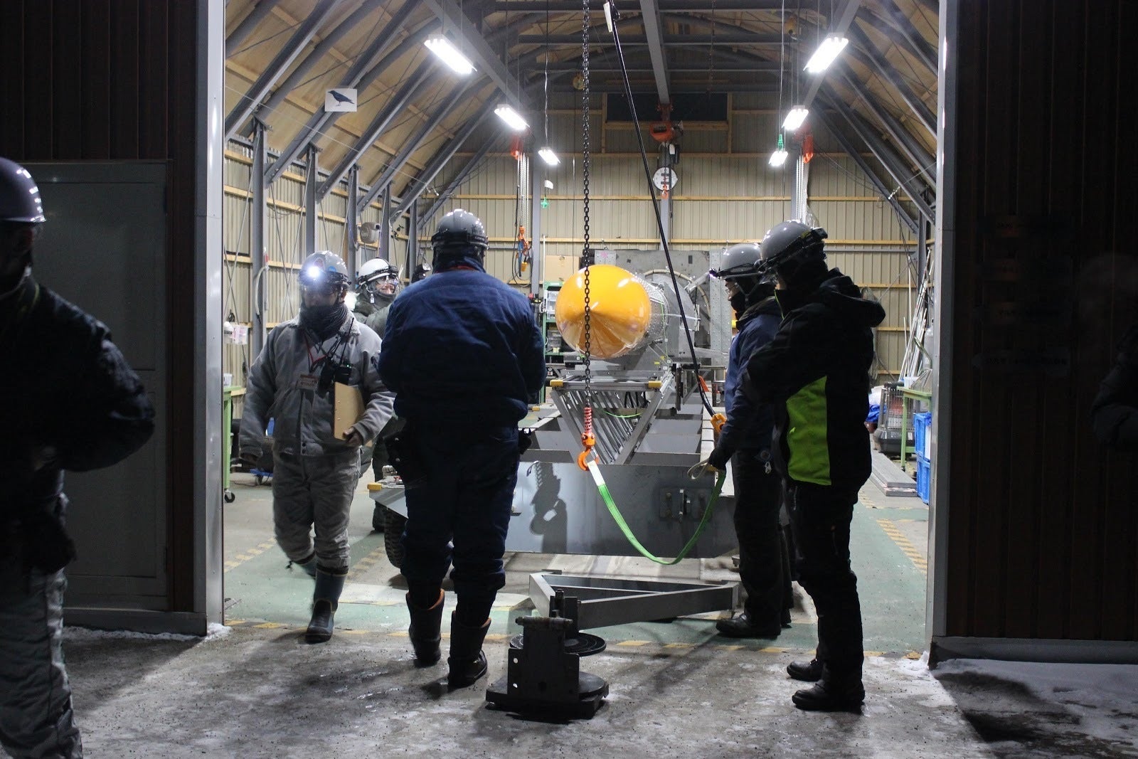 液体酸素と燃料を抜いたあと機体を寝かせて組み立て棟まで戻し、外装を開けて電子機器を確認しました。極寒の外気温のうえに、さらに-190℃近くもある液体酸素の充填で温度が下がり始めた状態で発生した不具合でしたので、低温がエラーの原因である可能性があります。そこで、厳密ではありませんが短時間で状況を模擬するためドライアイス(-78℃ほど)を使った冷却試験を行うとともに、ケーブルに不良箇所がないか目視チェックも行いました。
